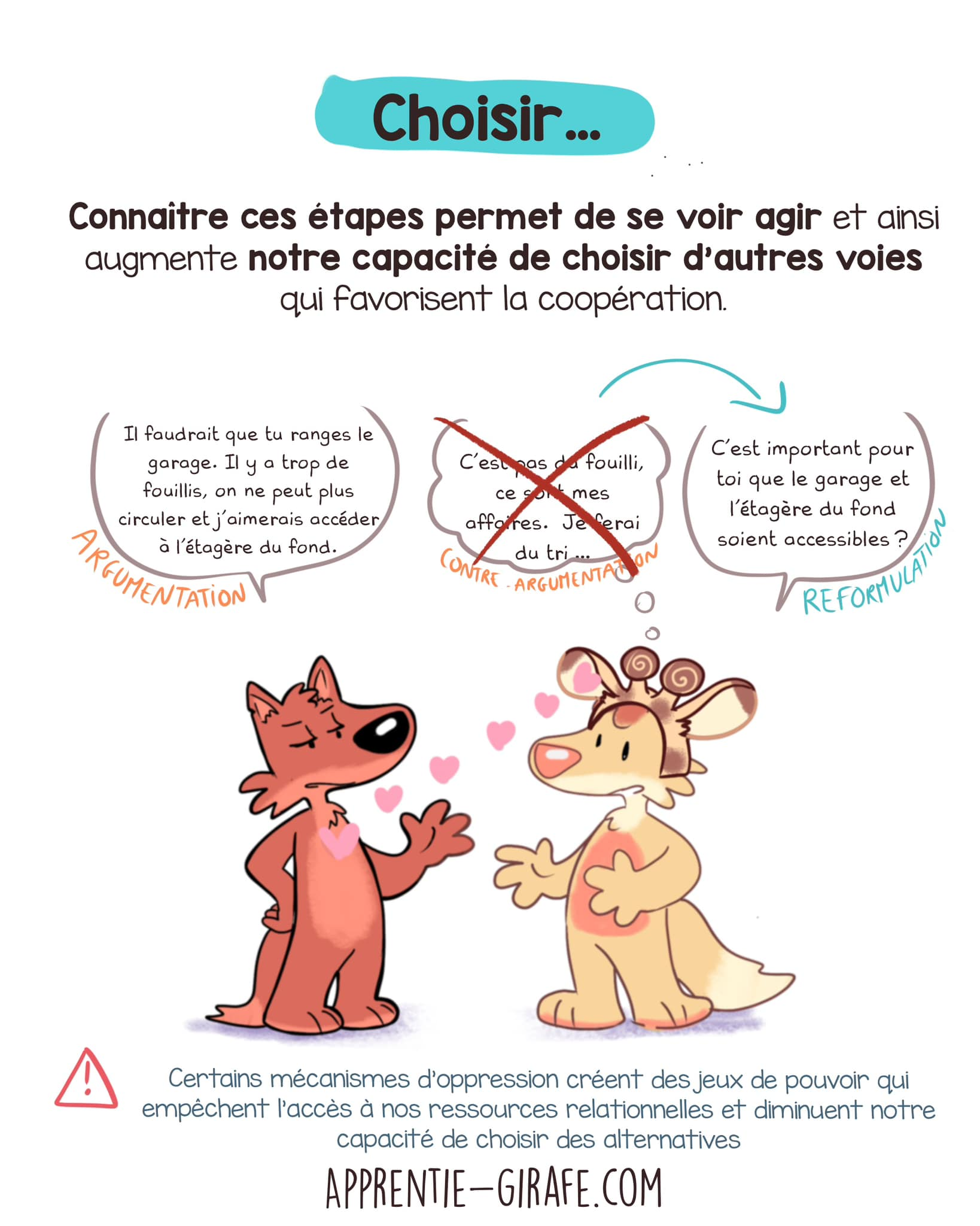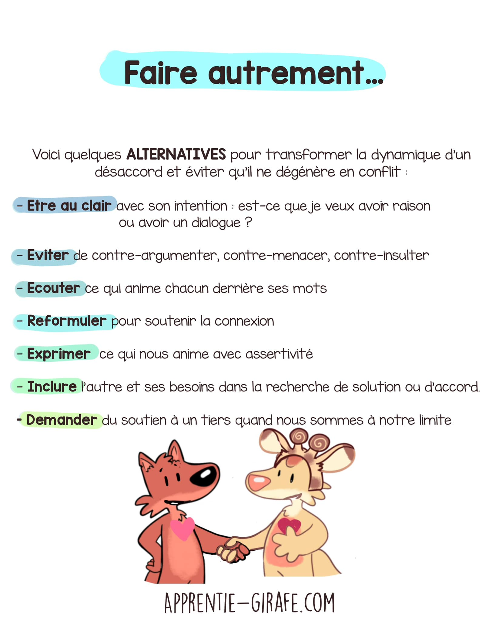 En exposant son ressenti et en essayant de se comprendre et d’aller vers l’autre, on peut désamorcer la plupart des conflits. C’est l’essence de la Communication non-violente.