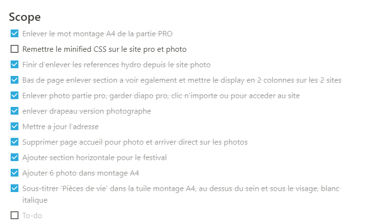 Ces échanges permettent au manager de produire un document appelé SCOPE et qui liste l’ensemble des tâches qu’il y aura à effectuer.