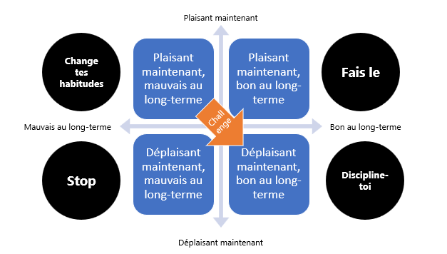 La discipline est donc une Prise de décision qui te permet d’arrêter de faire des actions faciles à gratification instantanée (qui génèrent de la fast-Dopamine) afin de plutôt faire des actions difficiles qui te rapprochent de tes objectifs.