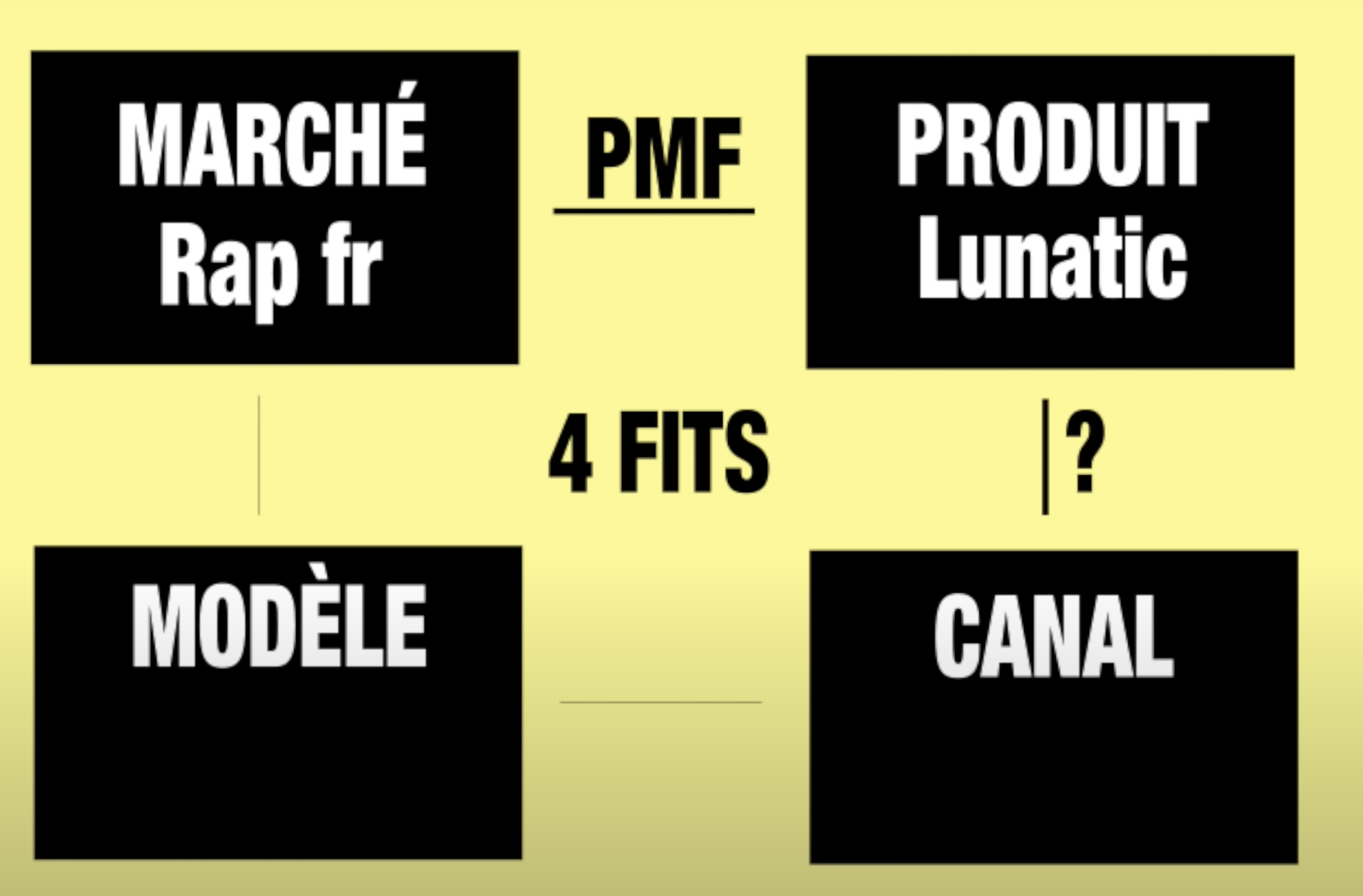 Pour trouver son Product Market Fit, on peut utiliser le modèle des 4 fits. Exemple :