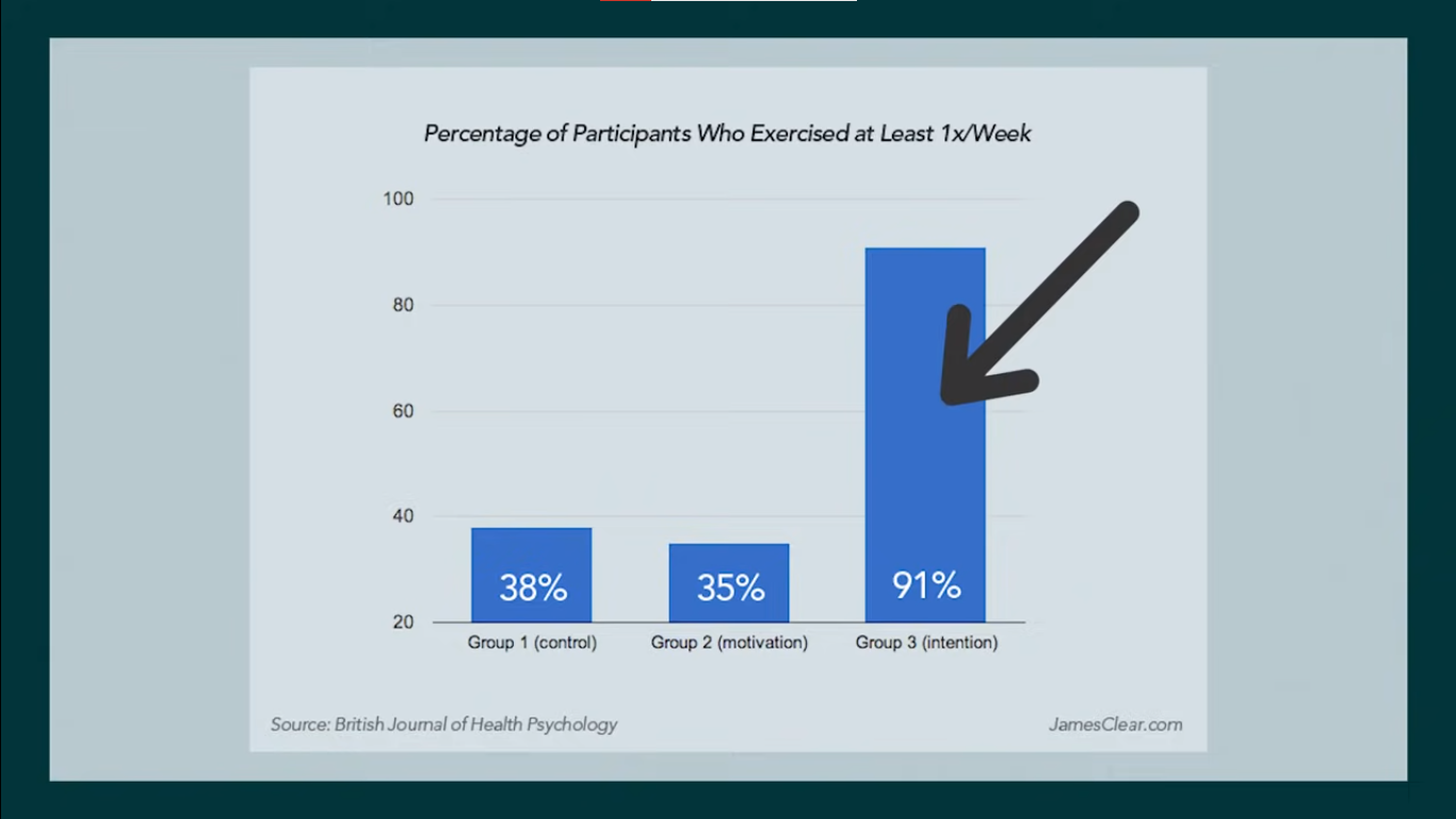 Hundreds of studies have shown that implementation intentions are effective for sticking to our goals, whether it’s writing down the exact time and date of when you will get a flu shot or recording the time of your colonoscopy appointment. They increase the odds that people will stick with habits like recycling, studying, going to sleep early, and stopping smoking. — Atomic Habits - James Clear