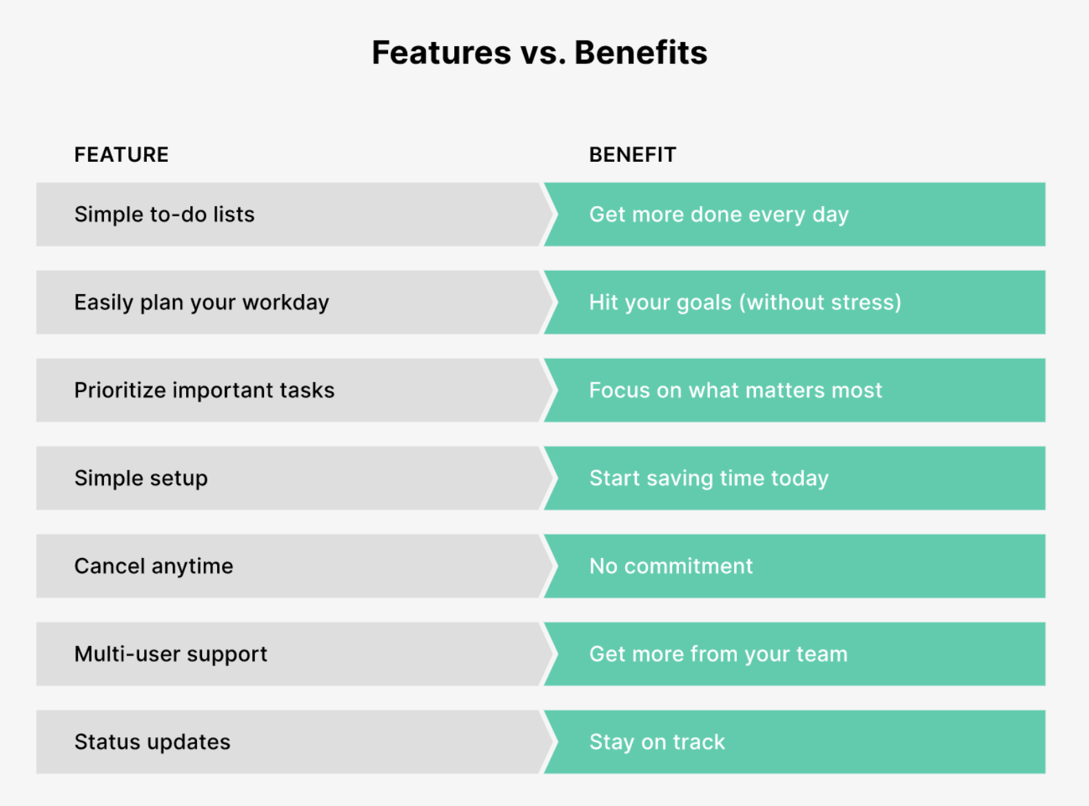 Une fonctionnalité est une caractéristique qui décrit votre produit. Par exemple : « ce livre fait 300 pages », « ces chaussures de sport sont fabriquées avec un nouveau matériau révolutionnaire », « ce logiciel trie automatiquement vos factures ». → Valeur