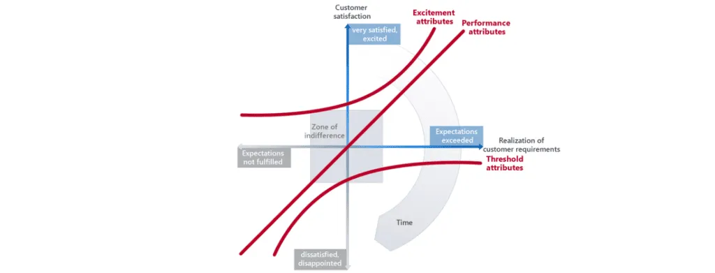 Modèle qui explique le lien entre la Satisfaction, l’Insatisfaction et la Valeur perçue d’un Produit.