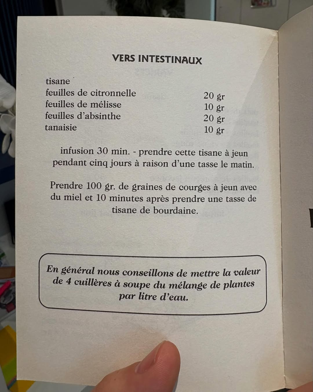 - Aux repas midi et soir, ajouter la synergie anti-parasitaire:
