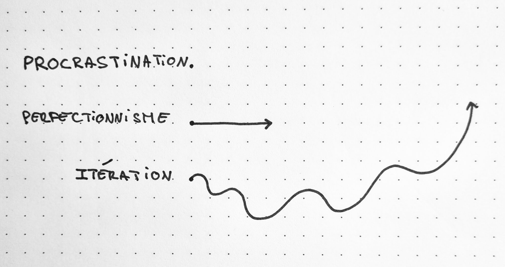 Tout travail nécessite un apprentissage pour monter en compétences. Pour avoir des résultats et lancer ton Projet de vie, tu veux Prendre l’initiative, et travailler en itérations pour à la fois te débarasser de la Procrastination et du Perfectionnisme.
