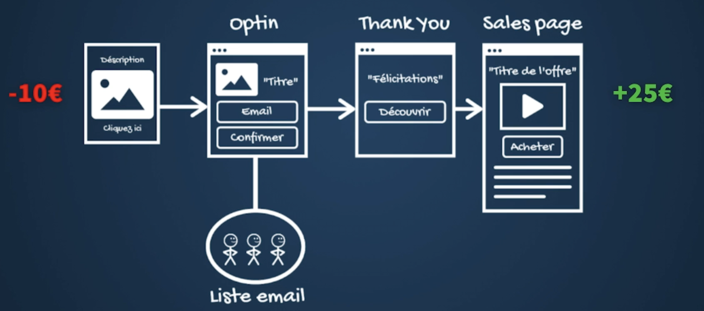 Une fois l’offre faite, il faut la Vendre via un Tunnel de vente. Par exemple :