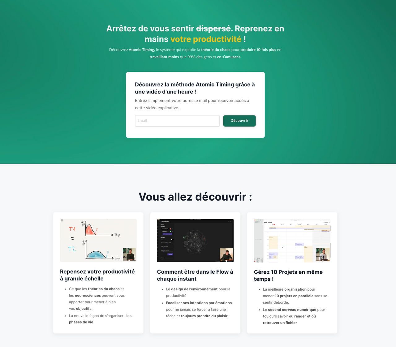 Titre : Bienvenue dans Atomic Creator Sujet: Bonjour et bienvenue dans l’univers Atomic Thinking ! Vous venez de me confier votre email pour débloquer accès à la vidéo de présentation de la méthode Atomic Thinking, merci beaucoup pour votre confiance Regardez la vidéo maintenant pour apprendre à utiliser le nouveau système de création de contenu, qui vous permet de créer plus rapidement des contenus riches et pertinents sans effort et de faire grandir votre audience. Si vous avez perdu le lien ou que vous voulez la revoir, voici son lien. Une fois cette vidéo d’introduction terminée, la manière dont vous apprenez, dont vous travaillez et dont vous pensez sera à jamais transformée.