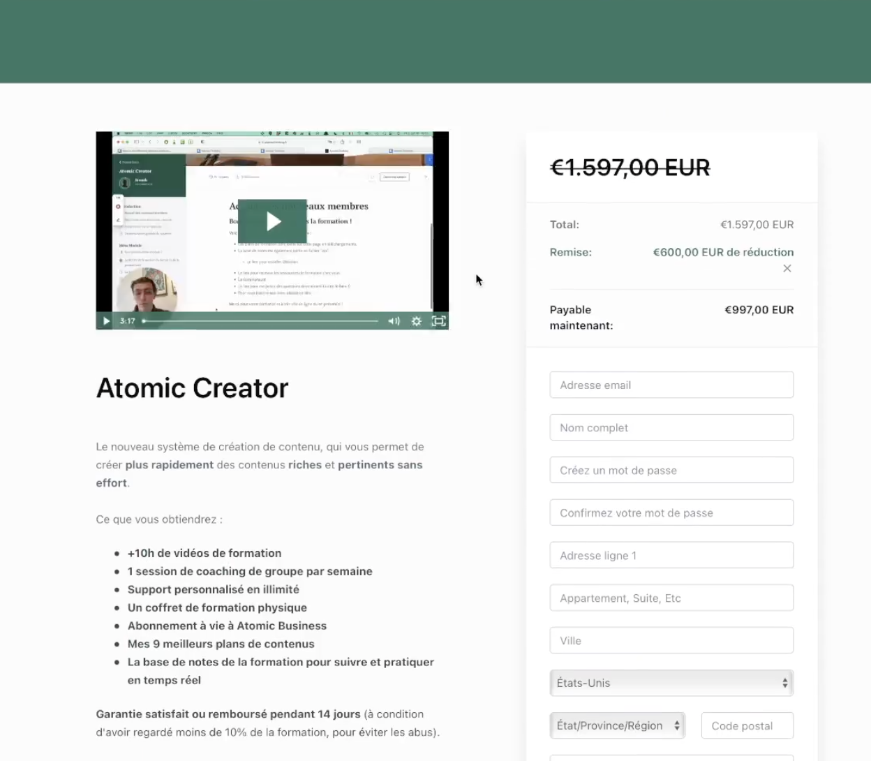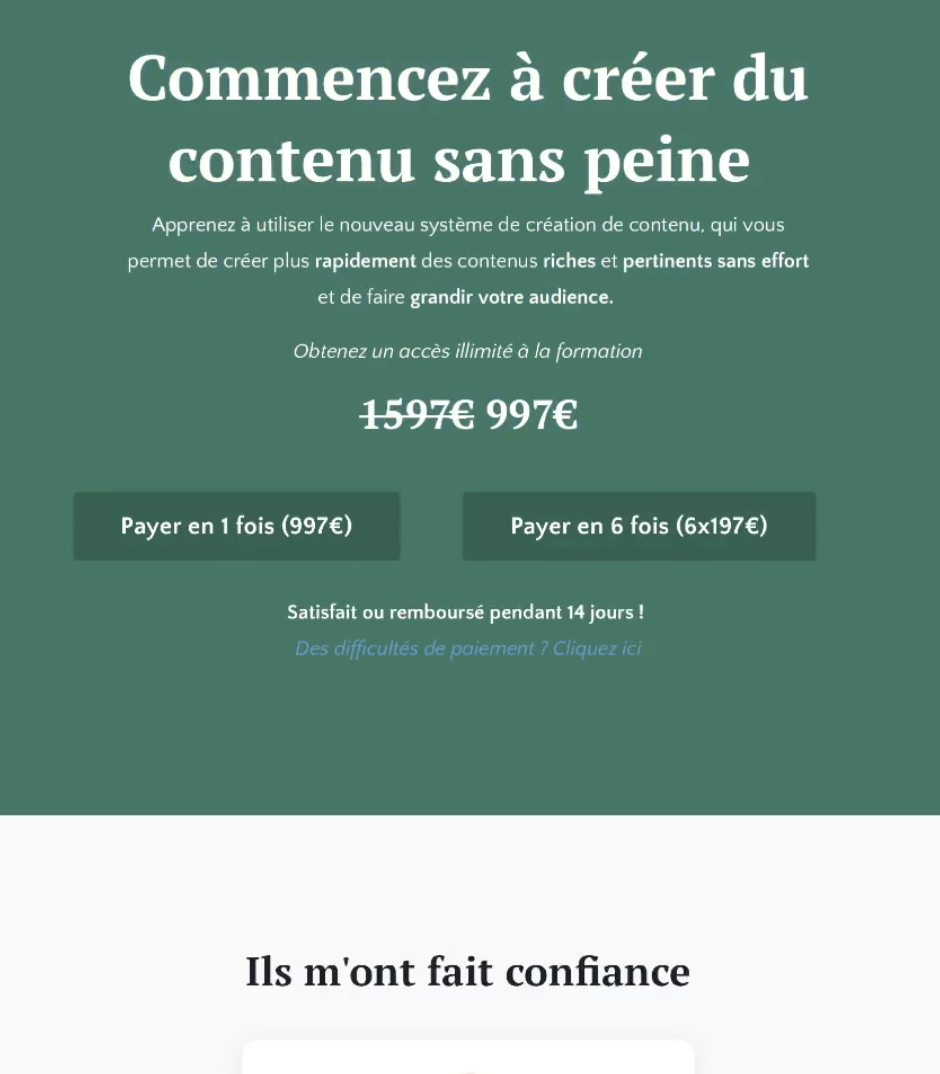 Si ils cliquent sur le bouton “Accéder à la formation”, ils accèdent à une Page de vente directement.